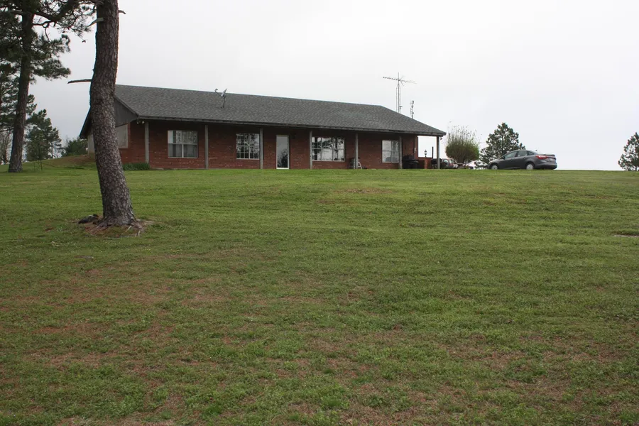 IMPROVEMENTS: Dwelling-1848 square feet of heated area per the county assessor report. 3 bedroom, 2 bath, wood burning fireplace, ceiling fans, custom oak cabinetry, central h/ac. A unique quality of this dwelling is the actual construction. While the front is typical brick veneer, the back of the house is built into the hillside and burmed. This allows for great energy efficiency and also protection from the elements. A new underground storm shelter is also at the site.
