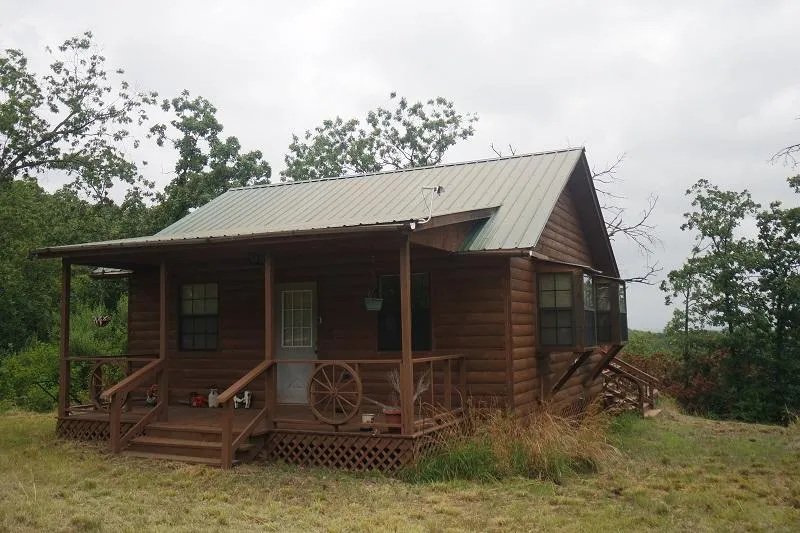 Nice secluded 576 square foot 1 bedroom 1 bath furnished log siding cabin on 12.46 acres with a 400 square foot wood deck with great mountain views in Southeast Oklahoma. This land has a small pond, good access, electric, rv hook up and is wooded with a mix of pine/hardwood timber. This would make a great get away property and is priced to sell. For more information contact direct: Michelle (918) 413-2046