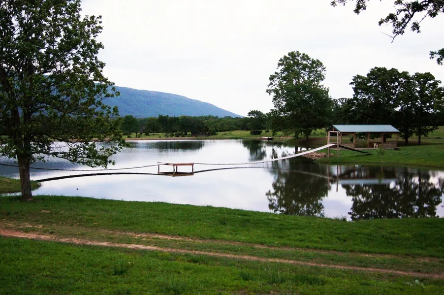The property has seven ponds ranging from small watering holes to a 5 acre, 20 deep lake. Ponds are all stocked with bass, crappie and catfish. There is a 400 zipline over the lake, a swinging bridge, and a picnic pavilion on the back side.