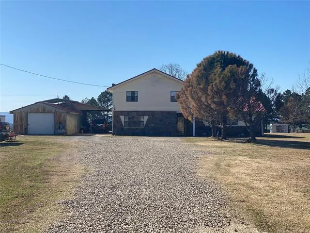 WOW! WHAT AMAZING VIEWS ON TOP OF THIS MOUNTAIN! LARGE 4 BEDROOM HOME W/3 BATHS, 2 LIVING AREAS AND A SUNROOM. THERE IS ALSO A WALK-IN SAFE ROOM! MASSIVE KITCHEN WITH GAS COOKTOP, DOUBLE OVENS & GRANITE! BEAUTIFUL TILE THRU-OUT, FORMAL DINING ROOM AND ALSO A WET BAR. THERE ARE SEVERAL OUTBUILDINGS FOR STORAGE AND PARKING. THE METAL ROOF IS APPROXIMATELY 6 YEARS OLD. MATURES TREES WITH LOTS OF OPEN FOR LIVESTOCK & AN ABUNDANCE OF WILDLIFE!!! THE LAND IS FLAT AND HAS 2 PONDS. DON'T MISS OUT!