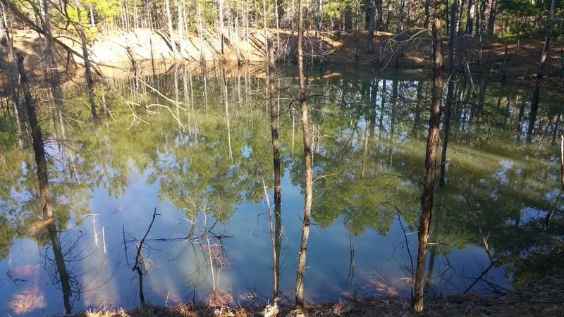 A pine, hickory and oak forest keeps the wildlife fed well and by now the wildlife uses the pond for a drink.