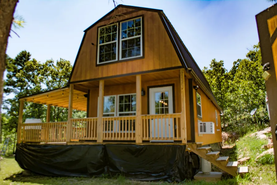 The cabin has a 29 Gauge metal roof, Smart side LP siding, painted with urethane for long lasting 5-10 year color consistency WITHOUT the need to recoat every year. The exterior house has a vapor wrap on exterior walls with R30 celling insulation and R-13 wall insulation. All corners and seams are foamed for ideal low energy / high efficiency, heat and cooling scenarios.