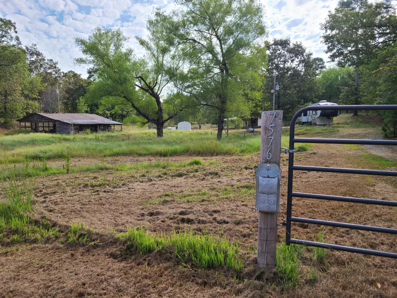 Go to the east at the T, this will be 241st. Go to property behind the gate.