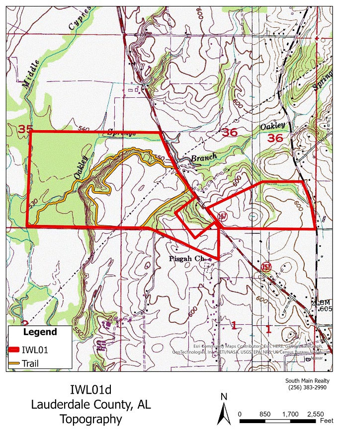 This 341 acre property is located just 10 minutes north of Florence, Alabama and consists of a mix of mature timberland and income producing farmland. There are approximately 130 tillable acres that currently have soybeans planted. The parcel located on the eastside of State Highway 157 is 71.8 acres and has huge potential for a residential development with access from both State Highway 157 and County Road 11. Moving back across to the west side of Highway 157, the property includes two creeks: Middle Cypress Creek and Oakley Springs Branch. Middle Cypress Creek runs year-round giving the property lots of recreational opportunities. There is an abundant amount of wildlife on the property and being in an area known for hunting and fishing this is truly an outdoorsmans dream. This property also has quite a history being the home to the Casey Cemetery where several members of the family cu...