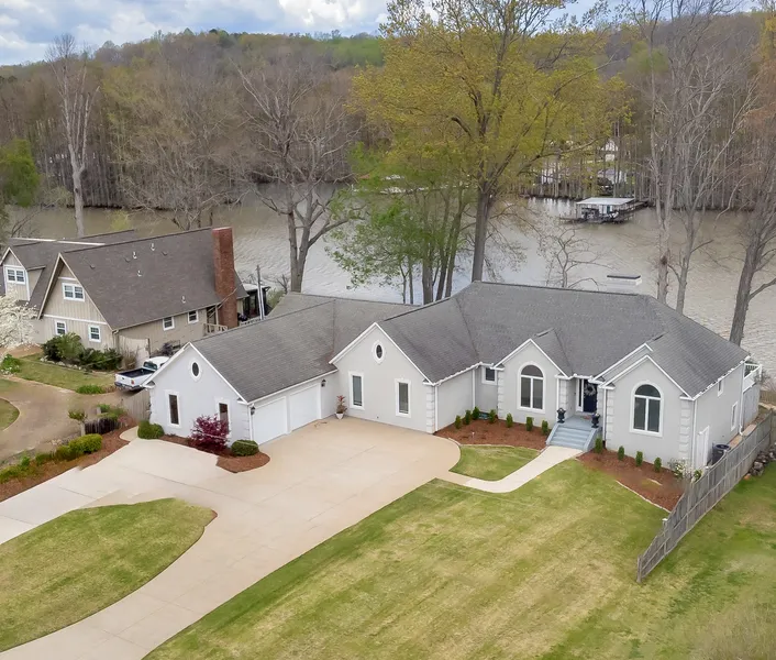 This lake home has it ALL! ONE FLOOR, flat lot, deep water, great boathouse, and 5 mins from Cox Creek Parkway. 3416 square ft. with 5 bedrooms, 4 baths, den, nice deck area, green grass yard with great landscaping! Tired of looking for a lake home with steps galore, shallow water, or some other objection? This could be IT! You have a very scenic view across one of the widest parts of Shoal Creek. Kitchen has been updated with great look! The view from the Primary suite, Kitchen/breakfast area, and Great Room are wonderful lake views. Just a short walk with very few and easy steps to dock. Great sea wall. Water is PLENTY DEEP for boating in and out of this property all year long. Den is large and great for football weekend gatherings with the bar area within reach! Tons of storage throughout the house, but the basement (with workshop) and its large walk out door makes it even better! 12 mins to downtown Florence, and less than two hours to Franklin TN.