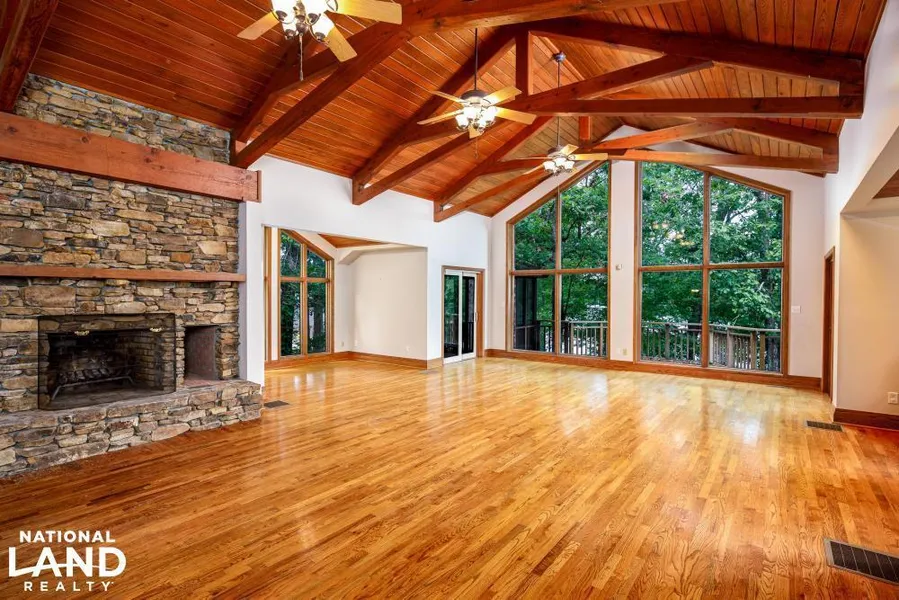 PRIME LOCATION! Beautiful custom-built lake house on a premier Shoal Creek lot with 189' of waterfront. Cabin/lodge style exterior with stone and cypress wood siding. The interior features 5,751sqft with split-levels, tall ceilings and large windows to view the lake in almost every room. 4 large bedrooms and 4.5 bathrooms. Huge double deck pier with two boatlifts, a solid concrete foundation. Massive lodge room with a tall vaulted ceiling, stone fireplace, custom wood beams, private deck and magnificent views! Newly renovated kitchen on the main level with stainless appliances, granite countertops and custom cabinetry. New carpet in bedrooms. Finished basement with a full kitchen, wet bar area, stone fireplace and bathroom with Jacuzzi shower. Location, Privacy, Luxury, Waterfront. MUST SEE! Listing provided by: Stephan Tomlinson