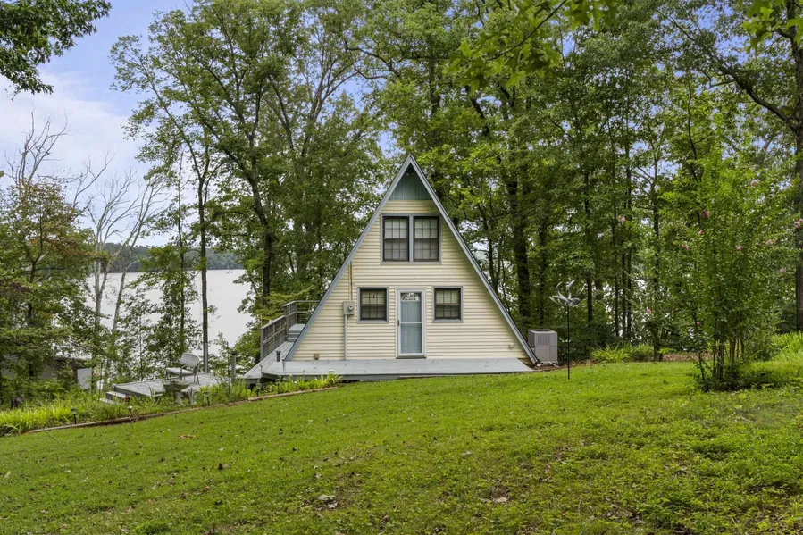 Charming Retreat on TWO Waterfront Lots with YEAR ROUND, DEEP WATER, and Boathouse! Escape to your own private lakeside paradise with this cozy A-frame home nestled on two spacious, waterfront lots offering year-round, deep water access. This unique property is perfect for a relaxing weekend getaway, a summer retreat, or even full-time living. Enjoy stunning views and direct water access from your very own boathouse, complete with two boat slips, an upper sun deck, electricity, water hookup, and dedicated storage for all your water gear. The property also features a 30' x 24' detached garage/workshop with two roll-up doors, including a high bay~ideal for boat or RV storage, hobby work, or lake toys. With power already connected, it's a versatile space ready for your needs. Don't miss your chance to own this Gem!