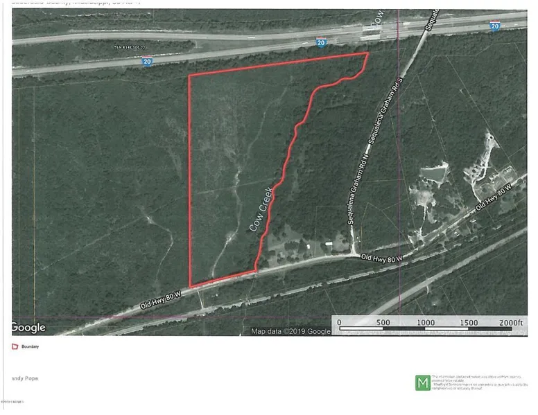 Excellent hunting property. Natural hardwood regeneration. 500 yards of beautiful Cow Creek frontage with paved road frontage on Old Hwy 80 W.