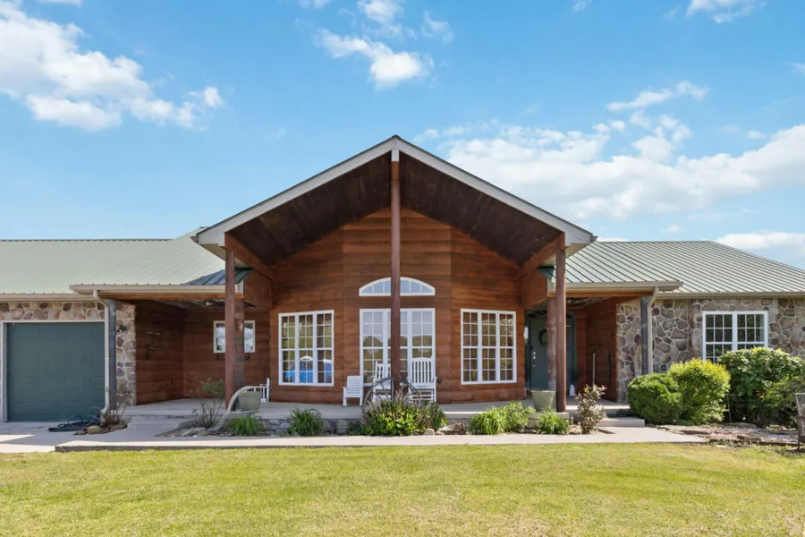 **Exquisite Modern Cabin-Style Luxury Home**Luxury living in this stunning modern cabin-style home, boasting over 5,000 feet of meticulously finished living space. 360 degree sunrise and sunset views! This property features a dramatic see-through wood-burning fireplace that elegantly connects the spacious open floor plan, blending warmth with a sleek modern aesthetic.Experience the wonders of nature, wildlife, on this expansive unrestricted property. A beautifully maintained inground pool, encased in tasteful black iron fencing, is a highlight perfect for relaxation or entertaining. The home sits on 17 acres of lush, flat farmland, offering peace and privacy amidst the untouched beauty of Amish country. The property's metal roof and lush landscaping further enhance its rustic yet modern charm.The full open basement holds endless possibilities, including the potential to add two additional bedrooms, making it ideal for customization to meet your family's needs. This is not just a home, but a retreat and canvas for your lifestyle, promising luxury and tranquility in a breathtaking setting. Make this unparalleled retreat your forever home. Call today!!