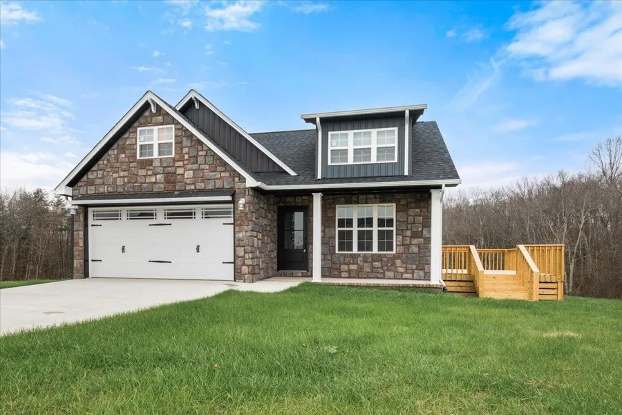 New Construction home in exclusive Queen's Crest Subdivision in East Bernstadt. The custom stonework front brings high quality curb appeal. Unique design layout allows for flexibility options. High grade hardwood flooring throughout the home. The kitchen boasts custom cabinets with a bar table for family style meals. Stainless appliance package included. The primary bedroom has a walk-in closet and an ensuite bath with more custom cabinets and marble vanity. The cathedral vaulted ceiling makes the living room soar with dramatic height. The 12x16 deck out back ensures easy inside to outside entertaining. The 2-car attached garage with a single 16-foot door allows for larger vehicles to be used. Construction can be completed within 4 (+/-) weeks. Interior photos to be done after construction is complete.