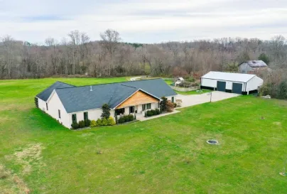 Motivated Sellers!! A hidden treasure in the midst of town. This sprawling white brick ranch sits on a breathtaking 21 acres of unrestricted land surrounded by lush trees. There are several ponds/marshes on the property. This new construction is a craftsman style design built in 2019 and offers 3268 sq ft of finished living space. The kitchen boasts white Quartz counter tops, Kitchen Aid appliances, subway tiled backsplash, top-of-the-line White Oak Hardwood and beautiful slate tile. The layout is a modern open floor concept with 4 bedrooms and 3.5 baths. It features a private office & a play room with a glass door so you can see the kids play, yet not be disturbed when working in the office just across the hall. Brilliant idea! The home also includes a Kentuckiana Alarm security system with 9 cameras, geothermal heat & air, as well as, built-in shelving throughout. Property also boasts ...