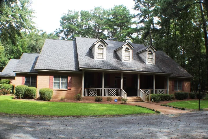 PRIVATE, PEACEFUL, PRIME OPPORTUNITY to own 8+ acres just outside city with beautiful custom home nestled on beautiful lot. Charming Southern home with front porch, large foyer, formals, great room with tray ceiling, fireplace, and wet bar, separate breakfast, and spacious kitchen. Split plan, master with his/her closets with fabulous built-ins, and an office leading onto screened porch with magnificent views of waterfall and Koi pond. Separate in-law suite with 1200', and unimaginable storage. Kennels for the dog lover or someone interested in dog breeding business. Two septic tanks, new roof. Handicap bath off laundry. Main house has 3032'. RV shelter and large workshop/storage.