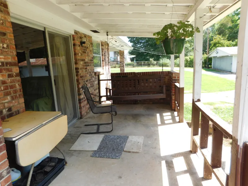 beams and a fireplace. The home also has covered front and rear