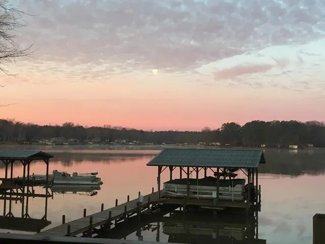 Updated 3/2 lakehome has beautiful long view w/ fabulous sunsets, deep water, lakeside fire pit & super Dock that screams Love Your Lake Life! Streetside, enjoy loads of open parking, a covered Boatshed, & 2-car Carport. Great storage w/ a big Garden Shed & a bigger Workshop Shed. All have convenient 110 amp. Lakeside, a beautiful mature wateroak tree provides wonderful afternoon shade so you can enjoy the open deck that runs the length of the house. Block Retaining Wall in place, Fire Pit ready to go, & you are gonna love the Dock! TWO covered boat slips w/ lifts, and TWO jet-ski lifts. 6ft. depth at the end of the pier means not only do you enjoy a fabulous view year-round, but you can get your boat out too. NEWER ARCHITECTURAL ROOF, NEWER HVAC (A/C & Natural Gas Furnace- 09), updated easy-clean tilt-in insulated windows, & newer laminate flooring (the high quality kind). All main panel Electric w/ underground wiring updated 2016. Cute lakehouse has a side covered porch from the Carport so you dont get wet. Enter the Kitchen thru a French Door & enjoy the Breakfast Bar, built-in display Pantry, double-basin composite sinks, DW & smooth-top stove. Kitchen fridge stays- a side-by-side ice-maker/front server. Kitchen opens to LR w/ cool beamed ceiling. Extra storage space on the enclosed porch- perfect for that extra fridge that can stay as well. Love the cheery DR that opens to the lakeside deck - it also serves as an office/craft area. There are 2 bedrms on the main level, both approx. 12x12. They share the main floor public tiled bath that has a separate shower & jetted tub. Downstairs where its always nice and cool in the summer is the Master Suite, including a private Den, Master Bedroom & Bath. Master has a wall of closets, & tiled private bath w/ shower. The Den (19x13) has a wall-mounted auxiliary natural gas heater that helps keep the entire downstairs nice & toasty in the winter without running up the bill. 15x20 Multi-purpose Rm on this lower level houses the Laundry area. Washer/Dryer stay dryer is gas-run but you can plug in an electric. Awesome storage space, but since it has double doors to the lakeside + a regular door, could be great as a lakeside workshop or a Rec Rm, & still have space for a golf cart or lake toys/kayaks etc. Perfect spot for a lakeside Jacuzzi on the lower concrete patio. Two septic systems- one for the house; the other on the opposite side would work for an RV or even a couple of campers. Invisible pet fence is negotiable, so are most furnishings. Appreciate Niceties like a whole house fan that cools your house down quickly without running up the bill, excellent insulation (home was draft-tested), separate switches for ceiling fans & lights, easy-on-the-eye neutral colors, storm doors to let in more light, various convenient built-ins, ceiling fans in nearly all rooms. Natural Gas grill hook-up on the deck. Lakefed irrigation helps the little veggie garden thrive- owner says Best Tomatoes! Nearly level lot & No HOA or community fees. But it is truly all about The Lake. Beautiful Views. Awesome sunsets. Nice sandy bottom swimming area w/ crystal clear water. Year-round boating. Love Your Lake Life!