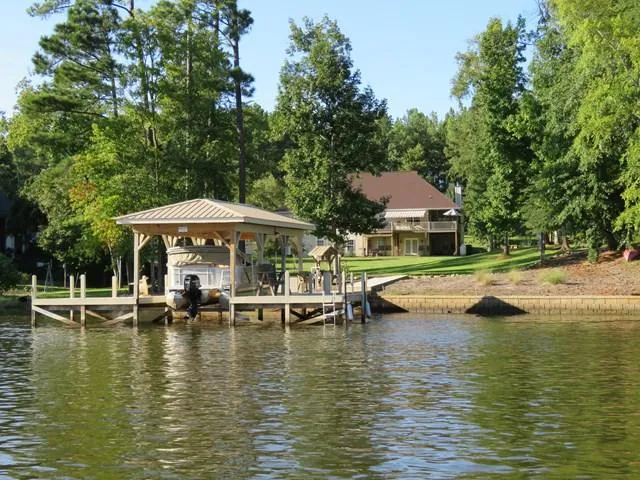Contemporary 2-level lakefront with lovely OPEN PLAN, incredible storage, a roomy back yard, & year-round water on Lake Greenwood. Beautiful 3/4 red oak floors grace this home, w/ trey & vaulted ceilings, elegant crown moulding & inset lighting thru-out. Gas Fireplaces up & down. Master Suites up & down. Wonderful open feel in the Great Room combining LR, DR & Kitchen. Main level also is home to a Dedicated Office, nice-sized Laundry Room w/ sink & NEWER Washer/Dryer that stay, & Half Bath. Updated Dream Kitchen has beautiful NEW granite countertops, NEW stainless fridge/DW/gas range, NEW lighting, & NEW stainless sinks looking out at the lake. Large Breakfast Bar/Kitchen Island w/ 2nd sink makes everything convenient. Loads of counter space & cabinetry w/ pull-out shelving. Walk-in Pantry. Dining Area leads out to a 209sf Covered Porch & a big open 2400sf deck that has all NEW easy-care...