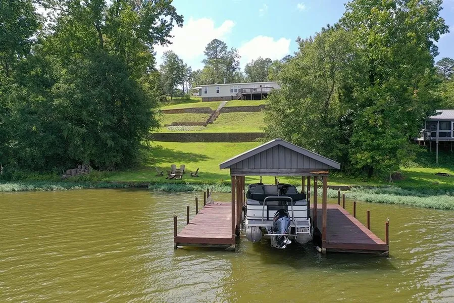 Welcome to 14 Relax Street This 3-bedroom, 2-bath lakefront home offers stunning views, spacious living, and direct water access. The open floor plan features a chef's kitchen with plenty of cabinetry, large island, and stone-accented range surround, flowing into a living room with fireplace and natural light from multiple windows. The owner's suite includes a double-sided fireplace, dual vanities, soaking tub, and separate shower. Additional bedrooms provide comfort for family or guests. Enjoy outdoor living with a full-length deck overlooking Lake Greenwood, a firepit gathering area, and your own private covered dock with boat lift. No HOA and no restrictions — giving you the freedom to truly enjoy lake life your way. A rare opportunity to combine comfort, space, and everyday lake living.