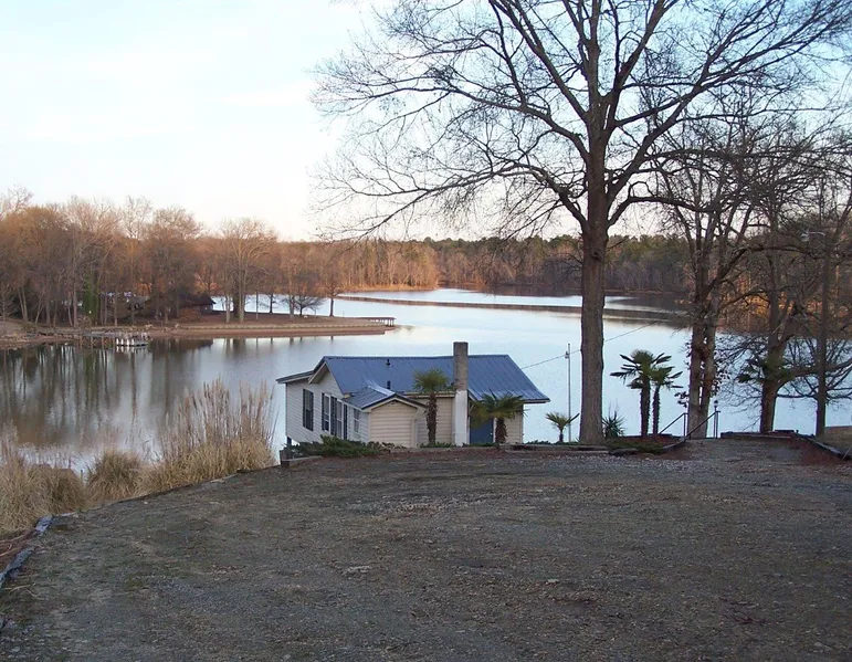 Cute 2 bed/2 bath waterfront cottage sits close to the lakeside w/ beautiful views! Each bedroom has its own bath, and the Master Bedroom has 2 closets. Master & the cozy LR have outstanding lakeviews & sliders to the back deck. You'll spend lots of leisure time BBQing out there- an especially nice view! Home looks out at a wide body of water with headlands so you can appreciate the best of all worlds- reflections of trees & sky, privacy away from the busy waterways, but deep enough water to enjoy year-round. Cottage has a new metal roof, new laminate flooring & is freshly painted! Central air/heat. Storage closet off deck. Spacious lot has gentle slope to the lakeside, loads of level open gravel parking & the grassy lakeside yard has irrigation system & a pier. Palm trees! Good water! Nice neat neighborhood- Barefoot Landing, and no HOA fees. Excellent access into town w/ quick zip into Greenwood. Love your lake life!