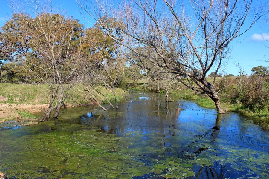 This secluded 141.55 acre tract located 20 minutes south of Hallettsville near Ezzell is highlighted by the Lavaca River bordering the east boundary & spring-fed Summer Branch meandering through the western part of the property creating an ideal country setting for the outdoor enthusiast, recreational weekender &/or rancher. Property improvements include a water well, electricity, (2) equipment/feed/storage barns, cattle working pen, mostly new perimeter fencing, interior cross-fencing & 16'x40' Morgan building that could be converted into living quarters. The property features 40' of elevation change throughout, mostly sandy loam soil, (3) small ponds & century old Live Oaks, some being 4'+ in diameter. Wildlife is abundant, including deer, hogs & ducks. Ag-exemption is in place through livestock grazing keeping taxes to a minimum ($271.68 in 2019). The property has quick access to Hwy ...