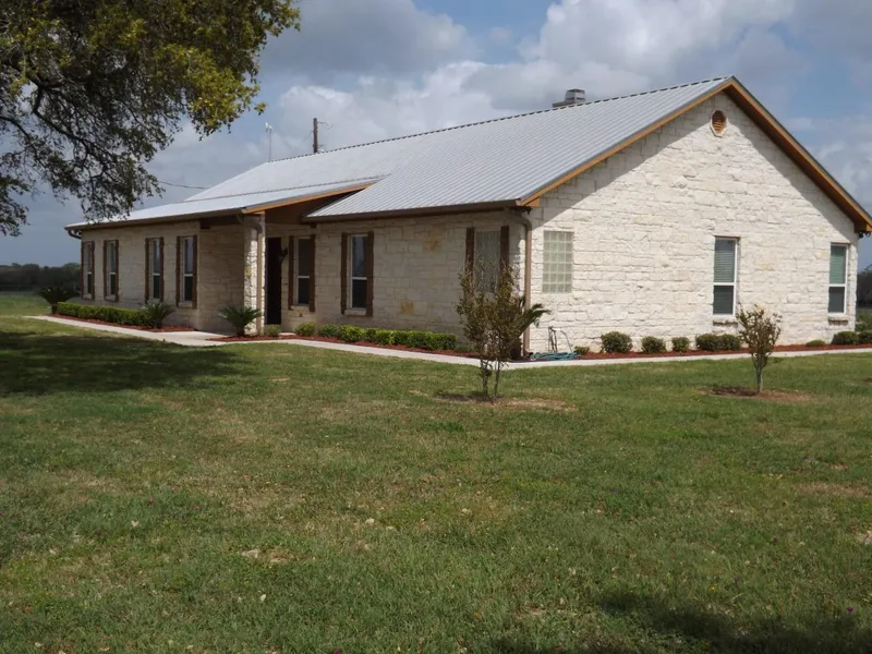 PERFECT COUNTRY GETAWAY! 50 live oak covered acres with an electronic entry gate and a 2490 sq. ft. Austin stone home with metal roof. The acreage is completely fenced and cross fenced. Barns and corrals are equipped with water supplies and electricity. A perfect set up for raising small or large livestock. The property has 2 water wells and a catfish stocked pond. From the back patio enjoy the pleasant southeasterly summer breezes and open view. Minerals negotiable.