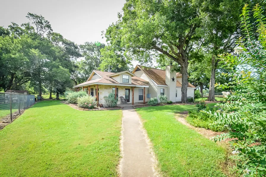 The main home is 2240 sqft with 2 bedrooms, 2 fireplaces, 2.5 bathrooms and plenty of areas for outdoor entertainment. The home is on a slab with Limestone accents around the porches. Enter into the spacious living room that is 22'x20' featuring a stone, wood-burning fireplace that can provide enough heat to warm the house in the winter. The kitchen, breakfast area and dining room are spacious too. The kitchen has silestone counters, a walk in pantry and opens to the breakfast island with a buffet area that is also plumbed. The dining area has the second fireplace which is limestone and propane.The master bedroom is next and is also spacious with an ensuite bathroom, walk in closet, laundry room and bonus room that has windows overlooking the yard with nice trees.Upstairs is the second bedroom which can hold a queen and two twin beds. Check out all of the storage, the sitting area, walk in closet and the bathroom with a shower too. Outside is so peaceful with many areas for entertaining or relaxing. Imagine sitting on the back porch to drink coffee and watch the wildlife and livestock meander. The firepit and pool provide many hours of fun with family and friends.The barn has a bunkhouse with 4 built-in bunk beds, kitchen and bathroom, 3 car carport, tack & feed room and storage. Walk through the pastures to the second barn with 4 stalls, lights, water and additional feed room. Bring your kids and/or spouse that loves horses and rodeos!