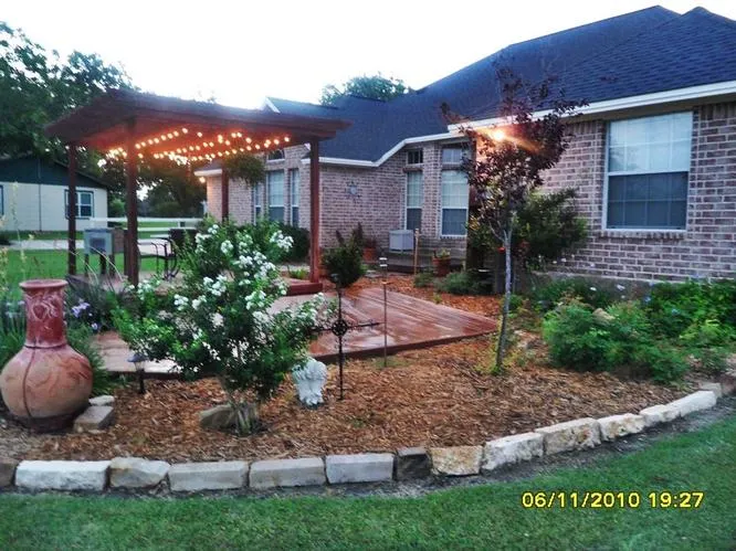 The back porch leads to a free-standing arbor with a rock fire pit. The back yard has a view of an open fairway with trees and natural beauty. Also included is an metal building (44x20) which is divided into two parts: storage/garage and a game room/mother in law suite.including a full bath and kitchenette.