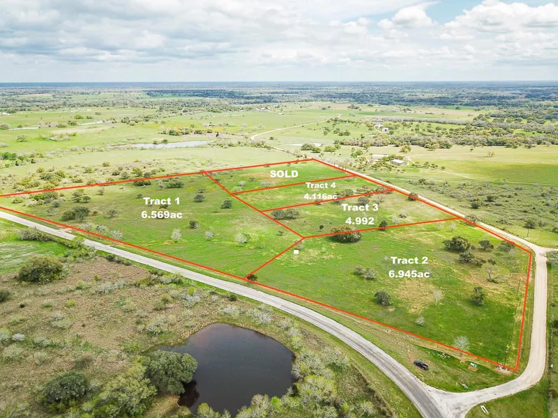 Tracts 1 and 2 have Farm to Market Road frontage and tracts 2 through 5 have County Road frontage.