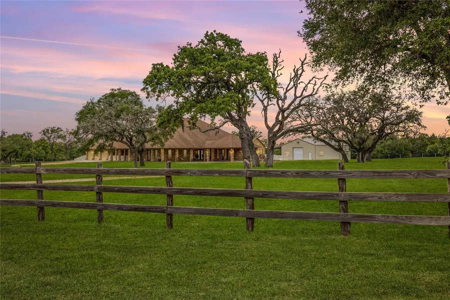 Enjoy this luxury South Texas ranch home on approx. 100 acres just outside of charming Hallettsville. Within a short distance from major metros, this is an ideal property for anyone looking for a quick getaway, corporate retreat, hunting camp or full-time residence. The home boasts 4 bedrooms and 3 full baths, chef's kitchen with commercial grade appliances, open concept living with formal dining room, breakfast area, office and a Texas great room with a 20 beamed ceiling. The outdoor covered breezeway, covered and open patio areas are ideal for outdoor entertaining. A 40x60 shop includes two 12 automatic doors, RV hookup, overhang and utility sink. The fully fenced property is prime wildlife habitat with both open grazing and natural South Texas coverage and a one-acre tank. Deer, turkey, hogs, song birds and birds of prey are seen daily. Other features include a three-car garage, hidden air controlled walk-in gun vault, sauna and generator.