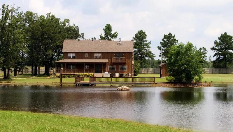 One of the most stunning ranches in the Arkansas Ozarks! Consisting of approx. 2,487 acres m/l, this ranch boasts 2 amazing homes, a watershed lake, large creek, pasture for horses or cows and incredible woods for hunting. The main home is 2 story and approx. 4,000 sq.ft. and features 4 bedrooms, 2 1/2 baths, large equipped kitchen with all appliances and a wet bar, formal dining room, spacious living room with rock fireplace, a card and billiards room and office. The master bedroom features plenty of closet space, a huge master bath with Jacuzzi and a balcony. The nice covered porch wraps around 3 sides of the home. The back of the home overlooks a large pond with a fishing pier and gazebo. The second one is an incredible log cabin style, which offers 3 bedrooms (one is a loft bedroom), 1 bath, vaulted ceilings, hardwood floors and a covered front porch. It is very modernized yet...