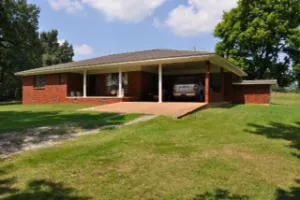 3 bedroom 2 bath brick home with hardwood and tile flooring, new plumbing,20 x 16 basement, new 60 Gallon hot water heater, and cedar closets. 2 barns, tool shed, and a corn crib on 80 Acres with 2 barns, tool shed, and a corn crib.
