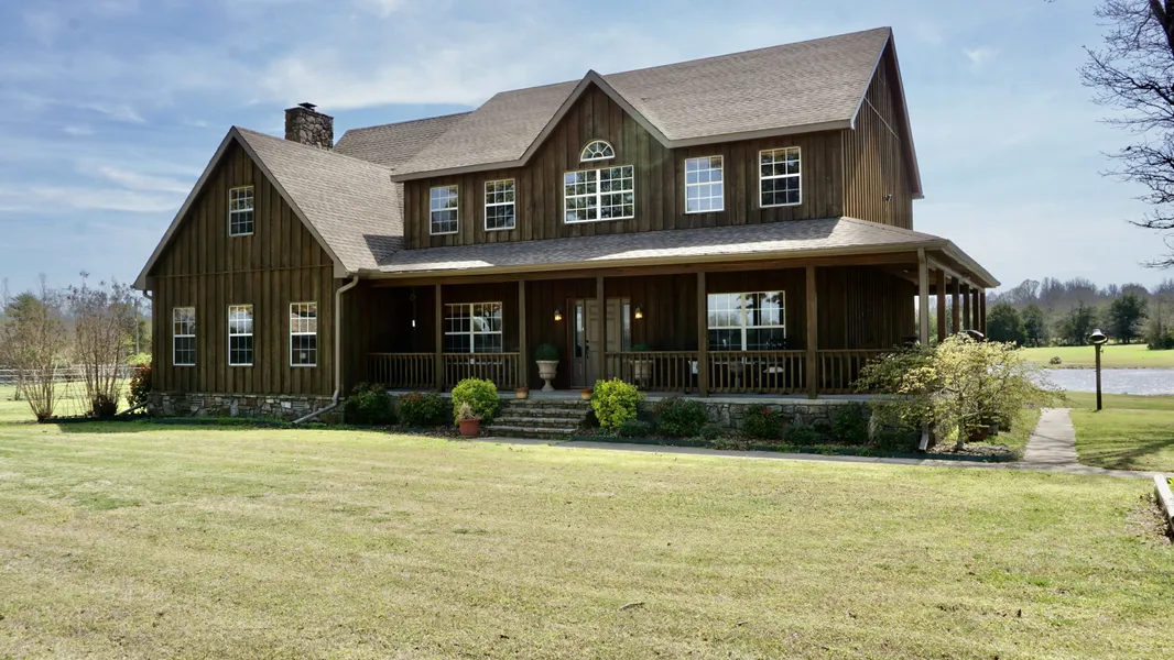 This beautiful estate in the rolling hills of the Ozarks is one you don't want to miss. It includes 4000+ sq ft home on 16 acres of land, horse barn, gazebo, small lake/pond and 2 out buildings. The horse barn (40X60) includes 5 stalls and a tack room. Relax on the wrap around porch of the beautiful 2 story cypress home. As you enter the home you will be impressed by the beautiful wood work and the grand entry and barrel ceiling. Upstairs you will love the master suite with his/her sinks, private water closet, fireplace, make up area, his/her cedar walk-in closets, sitting room and walk out balcony to over the pond and spot various wild life. It also includes three additional nice size bedrooms with great views of the property and a bathroom. The Kitchen boasts a separate ice maker, desk area, beer keg, large butler's pantry pull out cabinetry, and slate flooring. The great room features a rock fireplace and includes a huge leather reclining sectional sofa and beautiful wood flooring. The main level also includes a pool table/game room and flat screen TV, large dining room, huge office, half bath and breakfast room. If you're looking for a peaceful retreat with plenty of room to enjoy wildlife and somewhere to ride horses this one is for you