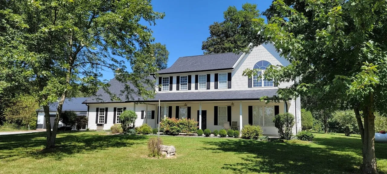 Welcome home to this stunning 3200+ sq. ft. Cape Cod mini-farm on 3.61 acres located near the Beautiful Spring Mill Park Recreational Area. Tucked away off the road, you’ll love the privacy, country views, and inviting drive that leads you past beautiful pasture space and newer 30' x 48' garage/barn. Stroll up the pathway to the covered front porchyour perfect outdoor oasis for relaxing on warm summer days. Step inside to the formal foyer, an ideal spot to kick off your shoes after a long day. From here, you’re welcomed into the grand entryway with an elegant staircase leading upstairs, or the open flow into the spacious living room and kitchen. Vaulted ceilings, crown molding, and luxurious finishing touches greet you throughout the home. The cozy living room features a gas fireplace, perfect for chilly nights, and flows seamlessly into the bright sunroom where natural light fills the s...