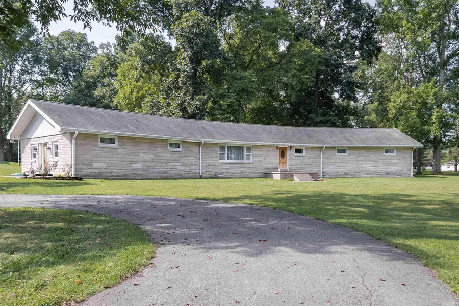 First-Right Contingency so it could still be yours! Priced BELOW appraised value, this spacious home is full of potential! With over 3100 sq ft of one-level living, this 4 bedroom, 3 bathroom limestone ranch sits on a beautiful 3 acre parcel. Inside, you'll find a thoughtfully designed layout featuring a custom kitchen with included appliances: stove, dishwasher, microwave, and a nearly new refrigerator (1 year old). The home features a huge family room with a cozy woodburning fireplace, perfect for gatherings or relaxing evenings. Each of the 4 bedrooms, along with 2 bathrooms and the laundry room are located on one wing of the home while the kitchen, dining room, living room, family room and 3rd bathroom are on the other end. The home is equipped with geothermal heating and cooling, making it energy-efficient year-round. Outside, enjoy the perks of a 40x40 heated garage with over 12 ft ceilings and 11 ft garage doors, perfect for RV parking, hobbies, storage, or workshop space, plus an additional 2-car detached garage. The peaceful, 3 acre country setting provides room to spread out while still being conveniently located. While the home could be move-in ready, it offers a great opportunity for cosmetic updates to make it truly your own.