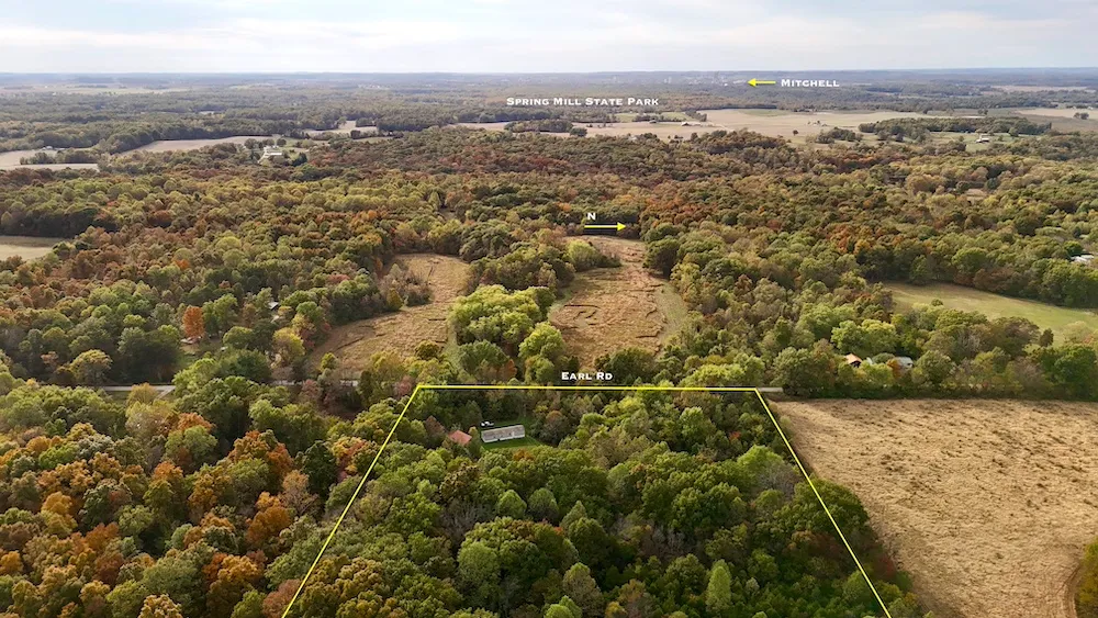 Located at 950 Earl Road, just east of Mitchell and less than 4 miles from the main entrance of Spring Mill State Park, this 14.35 acre tract provides a quiet country setting with privacy and established improvements. Set in a peaceful rural neighborhood, the property offers both convenience and seclusion, ideal for those seeking a manageable homestead or recreational retreat in southern Indiana.With approximately 530 feet of paved county road frontage, the property features a gated entrance and an established drive leading back to a one-acre clearing. This area hosts a well-maintained 3-bedroom, 2-bath single-wide mobile home along with a 24x32 pole barn built in 2017. The barn includes a concrete floor, 8-foot lean-to, overhead door and electrical service, making it useful for storage, equipment or hobby projects.Utilities are already in place and include electric service from Orange REMC, high-speed fiber internet from Orange Fiber, rural water from East Lawrence Water and a private septic system installed in 2017.Beyond the improvements, the land transitions into approximately seven acres of mature hardwood timber and about three acres of open field that has naturally developed into a cedar thicket. The combination of timber, cover, and edge habitat provides excellent conditions for wildlife. The property and surrounding landscape - characterized by large wooded tracts extending toward Spring Mill State Park - support healthy populations of deer, turkey and small game.This property has primarily served as a weekend getaway and hunting retreat, but its infrastructure and accessibility also lend themselves to full-time living. Located just 3 miles east of Mitchell, 13 miles south of Bedford and approximately 35 miles from Bloomington, the property offers a balance of rural privacy with access to nearby amenities.Whether youre looking for a small homestead, a ready-to-use hunting property or a quiet base near one of Indianas most scenic state parks, this 14.35 acre tract provides a versatile opportunity to enjoy southern Indianas natural beauty.