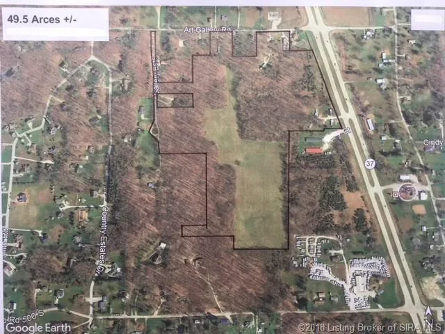 THIS IS ALSO LISTED IN MLS VIA # 2018010610 AS ART GALLERY ROAD, FOR ADVERTISING. Beautiful 49.5 +/- Acres Conveniently Located In A High Traffic Area between Bedford and Mitchell IN on Highway 37. The property has egress/access from both sides of the 4-lane Highway. Note if the buyer received approval, this would be a prime location for a commercial property or multi / single family housing. The land is conveniently located on Highway 37 & Art Gallery Road. Please note 1 +/- AC located on Highway 37/ Wray Court is already noted as (neighborhood) - Marion Commercial 9405-004. This total listing includes 10 parcels being sold together which includes 2 residential homes and mobile home parks. This special property has a variety of beautiful mature trees which could be sold after purchase. Two houses in listing are on Art Gallery Rd and there are 2 mobile home Parks. One is on HWY 37. There...