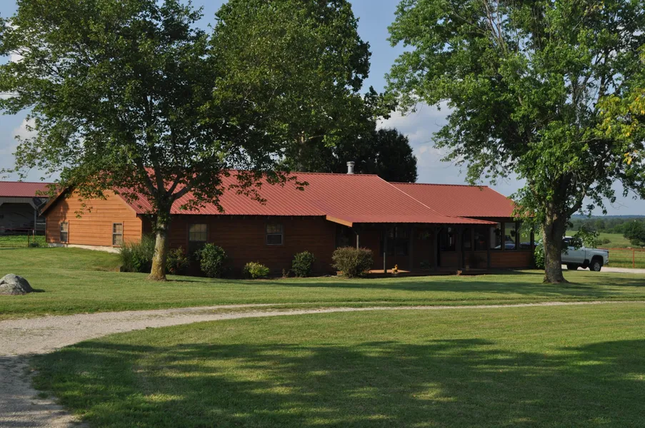 60+/- acres located in beautiful Lawrence county just North west of Marionville. The 3 bed 2 bath partial berm home offers updated appliances, cathedral pine ceilings, custom pine cabinets, dry bar with plumbing stubbed out to it, large screened-in porch and metal roof. The property has multiple out buildings built in 2006 including 30 x 36 shop/garage with concrete floor, concrete storm shelter and wood stove, a 56 x 44 cattle barn with pipe corral and a 30 x 60 hay barn. The open pastures are cross-fenced with automatic waterers and a large pond for amply livestock water and fishing. This property is wonderfully landscaped and offers the peace and quiet of a country estate with close proximity to both Aurora and Marionville.