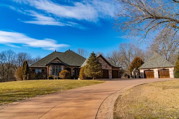 Absolutely amazing custom built all brick and stone home on a secluded, but easily accessible ten acres just minutes from Springfield. This home offers quality of construction rarely seen and only the finest of materials from Alpine Wood Products. Pull up to the custom iron gate entry and lets start our tour of one of the most beautiful homes in the region. You'll notice as you pull up the driveway the stamped and stained concrete. Pull up to the front of the house and you'll see that not only does this home offer a three car attached garage complete with epoxy non slip flooring, but there is also a two car detached garage with the same quality flooring. Walk through the front door and the first thing you'll notice is all of the detailed custom woodwork everywhere. Look to your left at the large office/library with built in custom shelves and plenty of space for your desk and all of your...