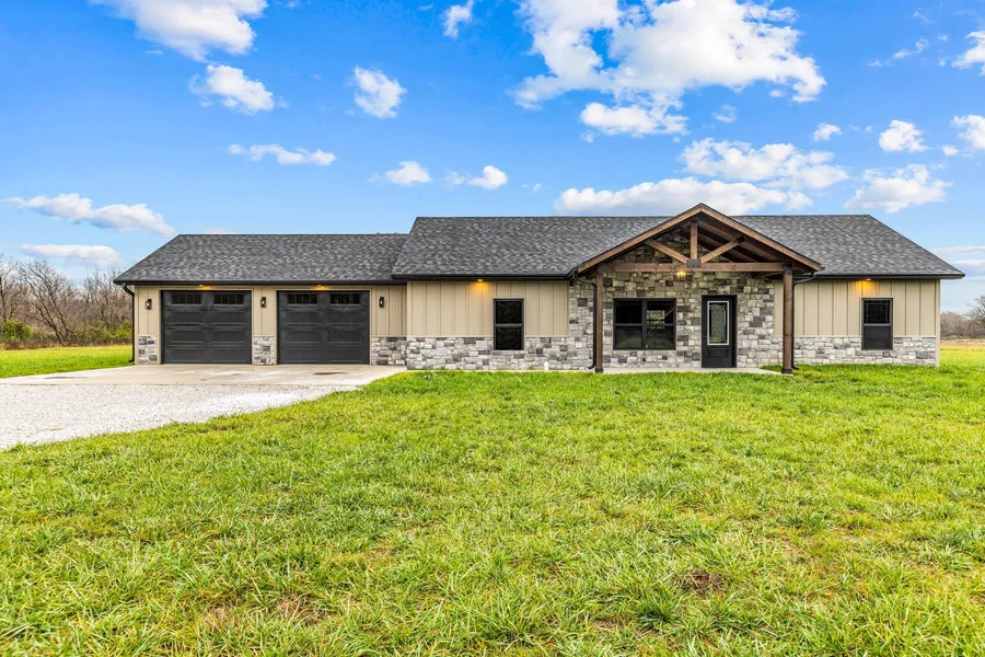 Beautiful brand new 3 bedroom, 2 bathroom home offering 1,521 sq ft of modern comfort and farmhouse-inspired style, all situated on 3 peaceful acres. This striking new build features a clean, attractive exterior with board-and-batten siding, stone accents, and a charming covered front entry. The attached 2 car garage provides ample space for parking and storage. Inside, you'll enjoy a bright, open-concept design filled with natural light, a well-appointed kitchen, and comfortable bedrooms designed for everyday living. Step outside to a spacious covered patio with high ceilings, perfect for relaxing, entertaining, or taking in the serene country views. Conveniently located just off Highway 96, this property offers the perfect balance of privacy and accessibility, with easy access to nearby towns. A rare opportunity to own a brand-new home in a great location--move-in ready, beautifully built, and made to last!