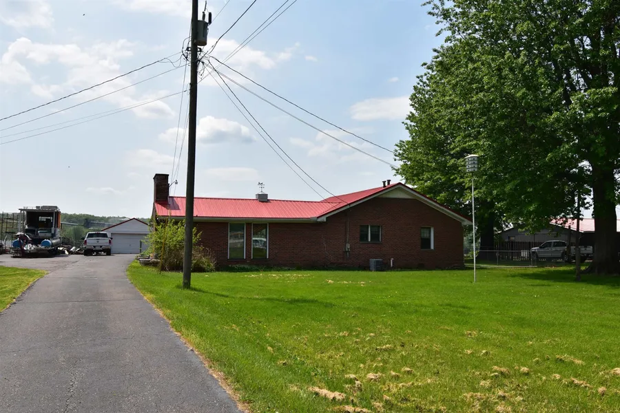 1.84 acres located on the Ohio River! Brick ranch with 2 detached garages. A 1 car and a 4+ car(28 x 40). Plenty of off street parking. Fenced back yard. With a little TLC would make a great place for entertaining on the river, or just sit back and enjoy the view.
