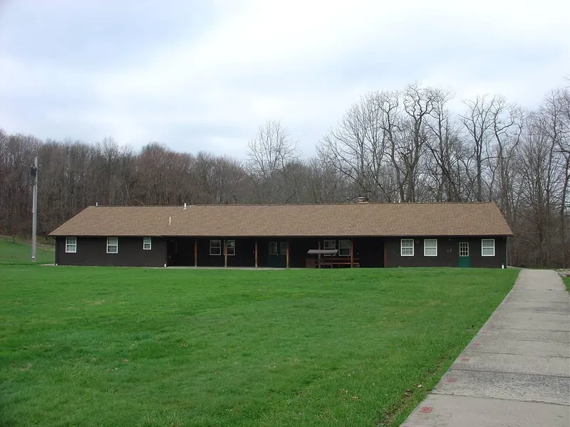 Pennsylvania Girl Scout Camp for sale: The property is accessed via a deeded gravel right of way road 18 feet in width. This is a legal easement and transfers to the next owner. The main entrance at the property boundary has a locked gate. The address of the camp is 289 Camp Elliott Lane.This turn-key facility is located just minutes from Grove City off State Route 168. The property is almost entirely wooded except for the building and program areas on the property. This setting is ideally suited to continued use as a girls or boys camp, holistic retreat center, corporate retreat, couples retreat, or simply as a terrific personal retreat. Neshannock Creek flows along most of the northern property boundary and is a well-known trout fishing stream. This particular stretch of the stream is governed by the “Delayed Harvest” area regulations, meaning that you can only use artificial lur...