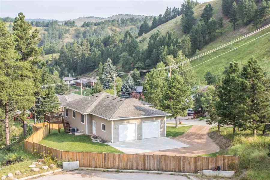Deadwood home with nice views, Whitewood Creek directly below, and modern convenience - this property is a rarity in style, features, and location. Easy access to main floor living areas, this ranch style home has 4 bedrooms, 3 bathrooms, wood floors through much of the main level, open living room, and spacious yard wrapping around the home. Move-in ready with most appliances conveying with sale. Two car garage and abundance of off-street parking, wrap-around deck with views, and central air conditioning. Spacious game room with a walkout to the side yard. Bathrooms are tiled - 2 on the main floor and 1 in the basement. Trees around the home provide natural barrier and forested feel. Located seconds away from the Mickelson Trail across the highway, Whitewood Creek flowing below, yet perched at a vantage point with many forested views.