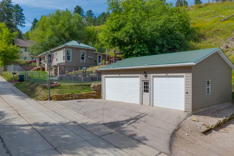 Amazing location in Deadwood, country feel with all the city amenities. This 4 bedroom, 2.5 bathroom home has very nice landscaping and outdoor living space. Come relax on the deck with views and fenced-in lawn space. The main floor of the home has wood flooring in the living and dining room areas. Kitchen has windowed view, stainless steel appliances, nicer cabinets, and eat-in area. Laundry room accessed off kitchen with walkout to deck, also access to main level full bathroom from here as well. Main level has 3 bedrooms and 1 bathroom. Basement has a 15x16 game room with walkout to front yard, office space and a half-bathroom. Basement also has a large bedroom suite that has a walk-in closet, on-suite bathroom with tiled shower and jetted tub. Home has hot water baseboard heat, concrete fiber siding, and dual pane vinyl windows. Detached 26x32 three-car garage has ample room for parki...
