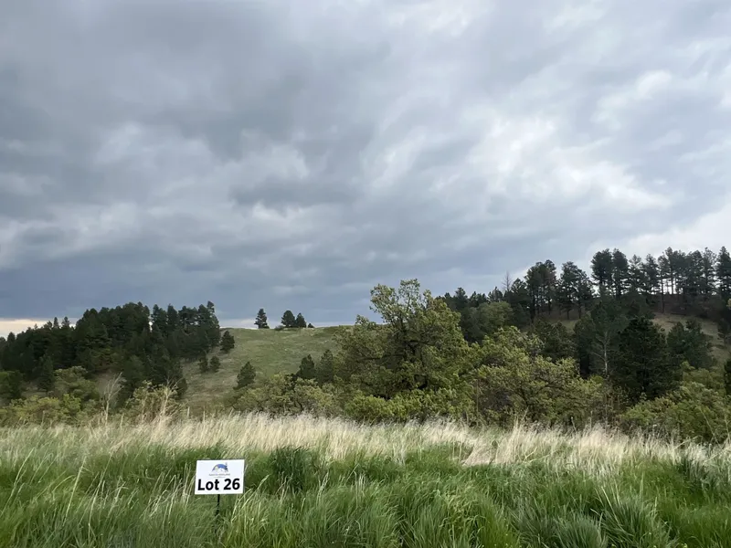 Lot 25 offers an expansive 12.17 acres, providing ample space and multiple prime building sites with stunning views of Bear Butte. The property slopes gracefully into a lower meadow, bordered by beautiful ponderosa pines, creating a picturesque setting. Perfect for nature lovers, this property is an excellent choice for building your forever home or a peaceful weekend retreat. 15-20 minutes to Spearfish as Sturgis. The Dakota Highland Estates provides electric, fiber, natural gas as well as allowing horses and barndominiums. Come out and spend some time.