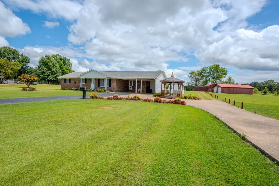ONLINE ONLY ACTION! Online-only auction begins to end September 23rd. at 6:00 PM Central. Welcome to 918 N Military St, Loretto, TN 38469. This well-maintained, mostly brick home with vinyl accents offers 3 bedrooms, 2 bathrooms, and a 2-car attached carport. Inside, you’ll find a spacious living room perfect for gatherings, along with a bright sunroom for year-round enjoyment. Relax on the front porch or entertain on the concrete patio overlooking the land. The exterior features a paved circle driveway, pasture with a pond ideal for animals, plus a shop and barn for storage or farm use. With additional building sites, the land provides room to expand or create a family homestead. Located in a desirable area, this property combines comfort and convenience, just minutes from downtown Loretto and only about 30 miles from Florence, Alabama. With its blend of home, outdoor living, and functional improvements, this property is a rare find in a great location.
