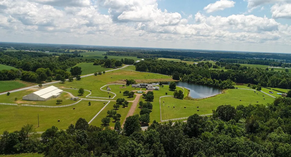 New price is for the 3,700 sq ft. 3 BR, 5 BA home, brand new kitchen, Glassed porch, fabulous game room, new outdoor pavilion, massive 20x40 pool, and a 4-acre lake all on +/-22 acres, All BR's have en-suite BA's. The barn and +/_ 7 acres can be purchased in addition to the main housel. Call for price. The barn is 90ft x 144ft and has endless possibilities. Could be a great income-producing wedding venue or gymnasium! Front entrance to the barn has been framed for living quarters.