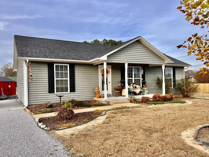 Welcome to this 1316 sq. ft. 3 bed 2 bath on a level half acre lot. Dead-end street! Popular open floor plan. Large bedrooms for small house. Includes stainless appliances, granite counters, covered front porch, back deck, fenced-in area just off deck for pets and 2 storage buildings. Nice landscaping throughout property. Easy access with only 2 steps up to front porch. 10 mins to town. Highspeed Internet. No HOA.