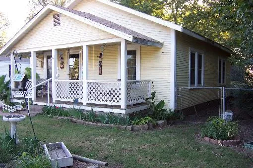 LOCATION: In the heart of the rural community of Wister, OK. The community park is directly across the street. Library, school, city hall, fire station, bank and post office all within easy walking distance. Only a few minutes drive to Lake Wister State Park; 9 miles to Poteau for shopping, hospital, and college. Ft Smith, AR (pop 80,000) is about 45 miles away. LAND: These homes sit on just over ½ acre of level ground with several mature trees for shade. The main house has chain link fence around the yard and a brick patio in the back yard. Stepping stone walkway leads from driveway to front porch. SERVICES: Electric, phone, gas, city water, sewer, and trash, mail route. MAIN HOME: Yellow wood framed cottage has 940 sf according to county records. Built in 1930. Cozy home has living room, dining room, 2 bedrooms, kitchen, 1 bathroom, and utility room. Recent improvements include new storm windows (2008), new front porch (2006), remodeling in bathroom (2005). Taupe plush carpet in living room, dining room, bedrooms. 9’ ceilings LIVING ROOM: 13’5” x 11’5” Burgundy painted panel walls; white ceiling; ceiling fan with light DINING: 13’5” x 11’5” Open to the living room. Burgundy walls with sage green accent wall. White ceiling; copper toned light fixture suspended over the table. Self-vented gas fireplace with wood surround and mantle is the focal point. KITCHEN: 10’7” X 7’6” Deep Apple Red painted panel walls; paper border accent; inlay flooring; white ceramic double sinks; White cabinetry with red accents. Magic Chef 4-burner range (apartment size) is included. BATH: Shower, toilet, vanity with white cabinet below and mirrored cabinet above; inlay flooring. Bath room is access through bedroom 2. BEDROOM 1: 11’5” x 15’5” Sage painted panel walls, white ceiling tiles, ceiling fan with light, small closet and short walkway to other bedroom. Walkway could be converted to add closet space for both bedrooms. BEDROOM 2: 11’5” x 12’5” Lavender and deep purple painted panel walls; white ceiling tiles, ceiling fan with light; small closet. UTILITY: 6’1” x 10’7” Sage painted walls, wood flooring, water heater, connections for washer/dryer. Access to back yard. FRONT PORCH: 20’2” x 5’8” 2ND HOUSE: Wood frame house has 624 sf according to county records. 1 bedroom, 1 bath, kitchen, dining room, living room, utility room. Built in 1930. Some remodeling done in 2005, included new insulation. TAXES: $515.10 PRICE: $72,500 COMMENTS: Make yourself at home in the main house and have room for guests or extended family in the 2nd house. Storage buildings and mobile home are not included in sale.