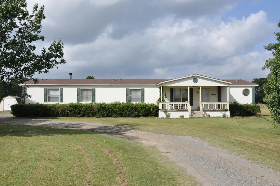 HOME: This home is a 2000 model Clayton Silvercreek manufactured home. It has a composition roof and metal skirting with the exterior painted a pale yellow and trimmed in hunter green. The home is built on six I beams with 15 yards of concrete in the foundation. The walls are 2 x 6 and have extra insulation. The home has 2,020 s.f. of heated and cooled living area and features a large living room, dining room, den, kitchen, utility, four bedrooms and two and three quarter baths. There is a covered front and rear porch. Extras to this home include a corner fireplace, crown moldings, acoustic slanted ceilings and thermal pane windows. Heating and cooling is central electric with a backup thermostatically controlled propane space heater. There is currently no propane tank on the property, but there is a gas wall heater that has been hooked up in the past. Room dimensions and descriptions include the following:
