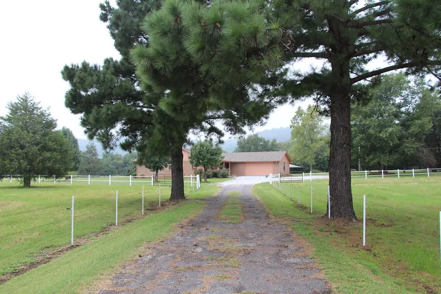 5 acres and 2400 sq. ft. home in beautiful subdivision of Poteau, Ok. Wonderful view of Cavanal Mt. Property is fenced for horses and has horse shed with stalls and tack room, also has a small spring fed pond. An oversized dog kennel is adjacent to the shed and stable. Home has 16x12 kitchen with new black range. Kitchen also includes microwave, side by side refrigerator with ice maker. New high efficiency Rheem 5 ton central heat and air conditioning. Must see to appreciate all the extras.