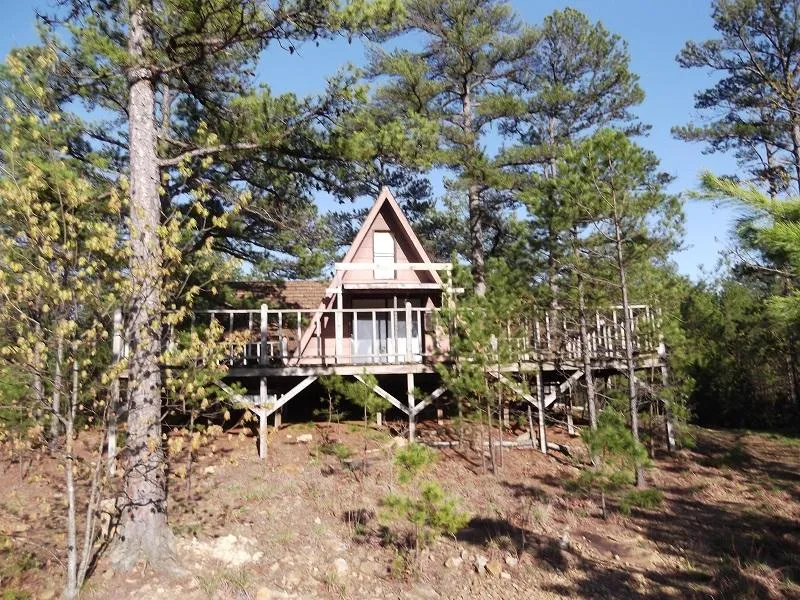 ATTENTION HUNTERS 21.14 acres of remote hunting land in the heart of Quachita National Forest, in the Big Cedar community of LeFlore County, Oklahoma. This property has a gated good all weather dirt road to property, off Highway #259. This land is wooded with a mix of pine/hardwood timber and joins the National Forrest on two sides. It has a 480 square foot a-frame cabin with a large deck overlooking valley, it has two good water wells, no electric.