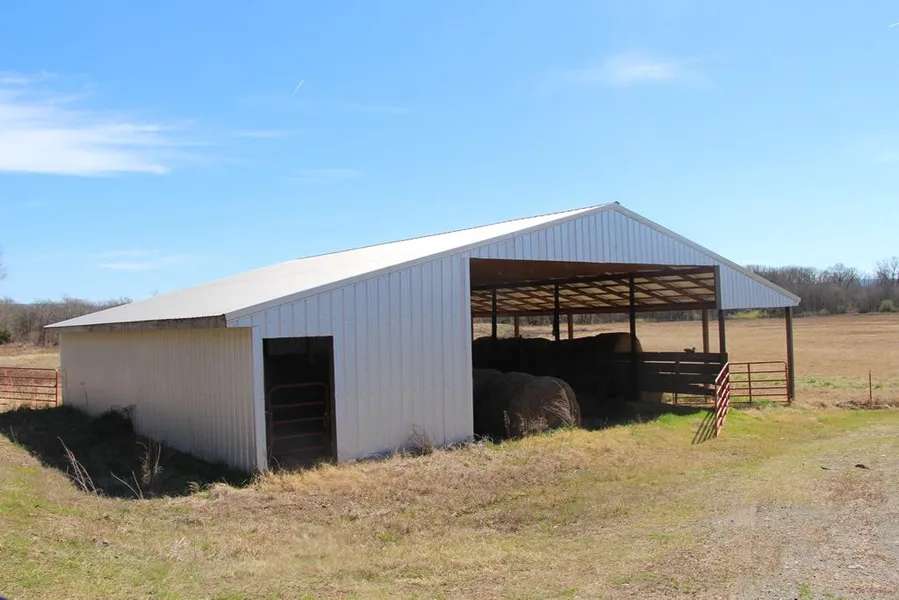COVER: Estimate 60+% pasture with scattered trees. Grasses are a mixture of bermuda, clovers, and native. Most of the open is regularly baled for hay. Wooded area provides excellent wildlife habitat.